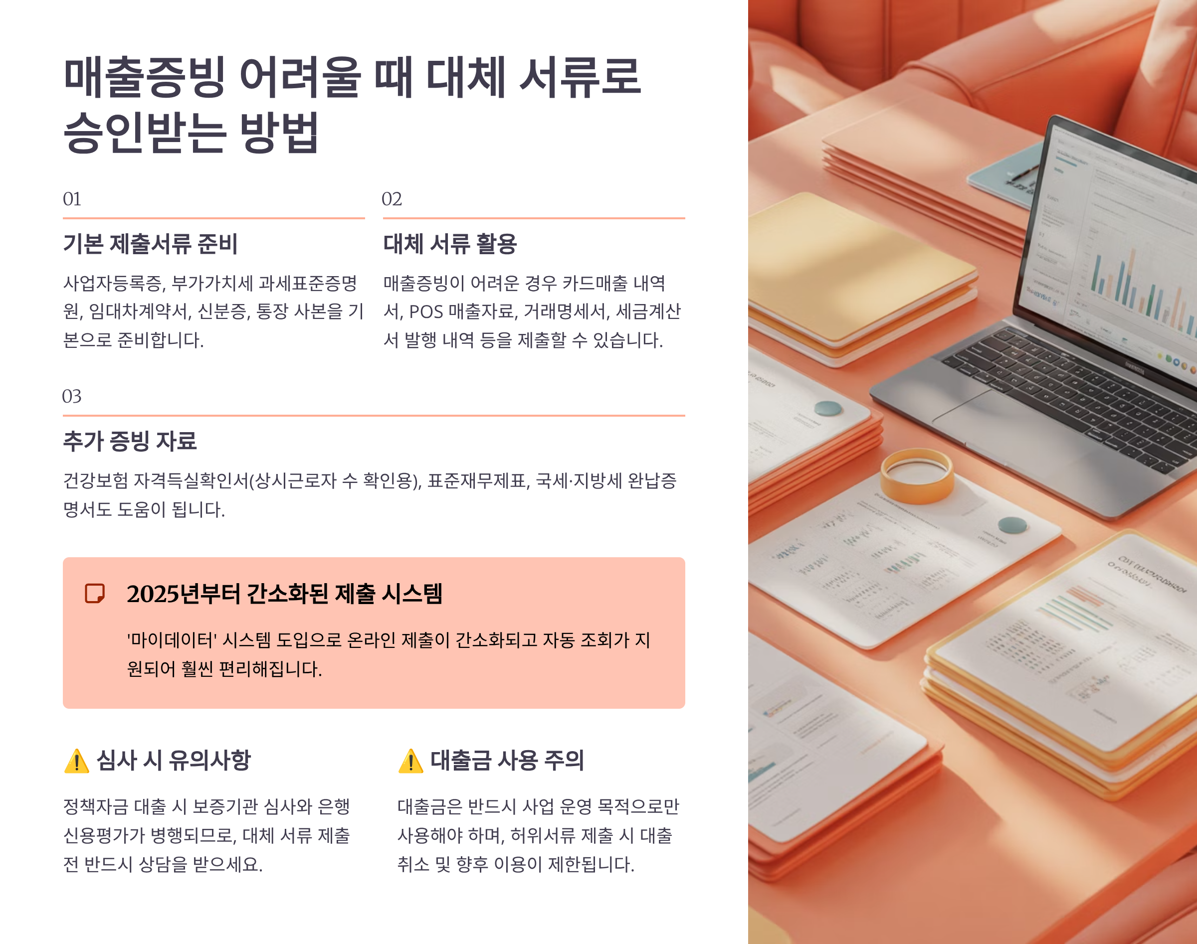 매출 증빙이 어려운 개인사업자분들, 정말 답답하실 거예요. 현금 거래가 많거나 사업 초기라 매출이 불규칙한 경우, 기존 방식으로는 대출 승인이 쉽지 않죠. 하지만 대체 서류를 활용하면 충분히 승인받을 수 있어요. 제가 실제로 확인한 방법들을 알려드릴게요.