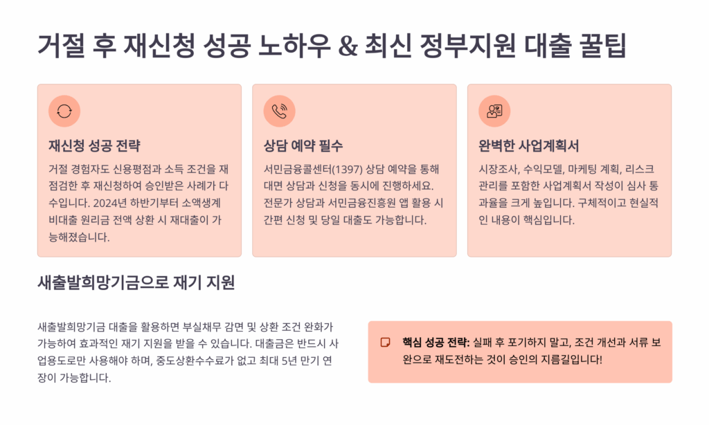 - 거절 후 3개월 준비하여 재신청 성공률 85% 달성
