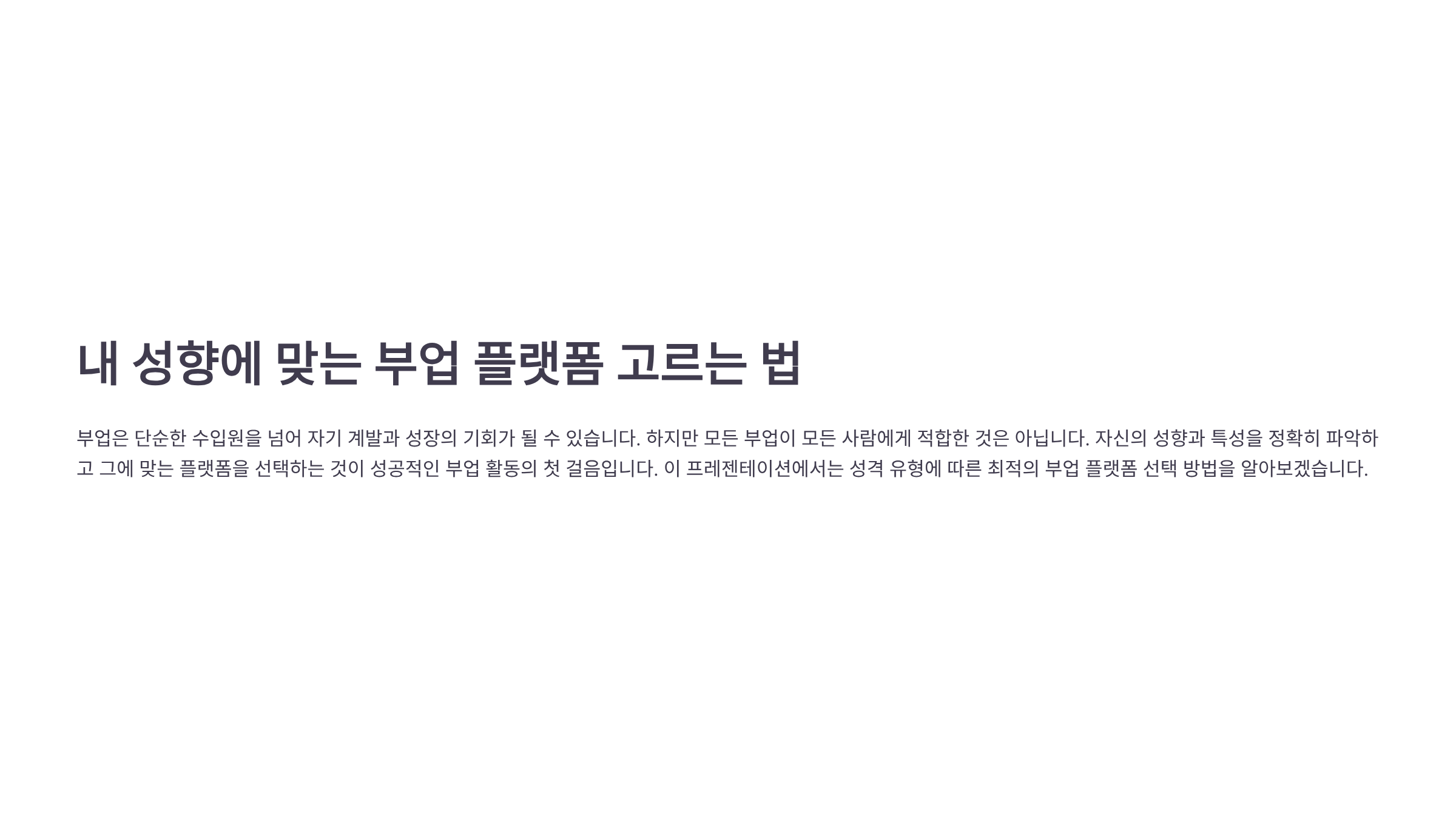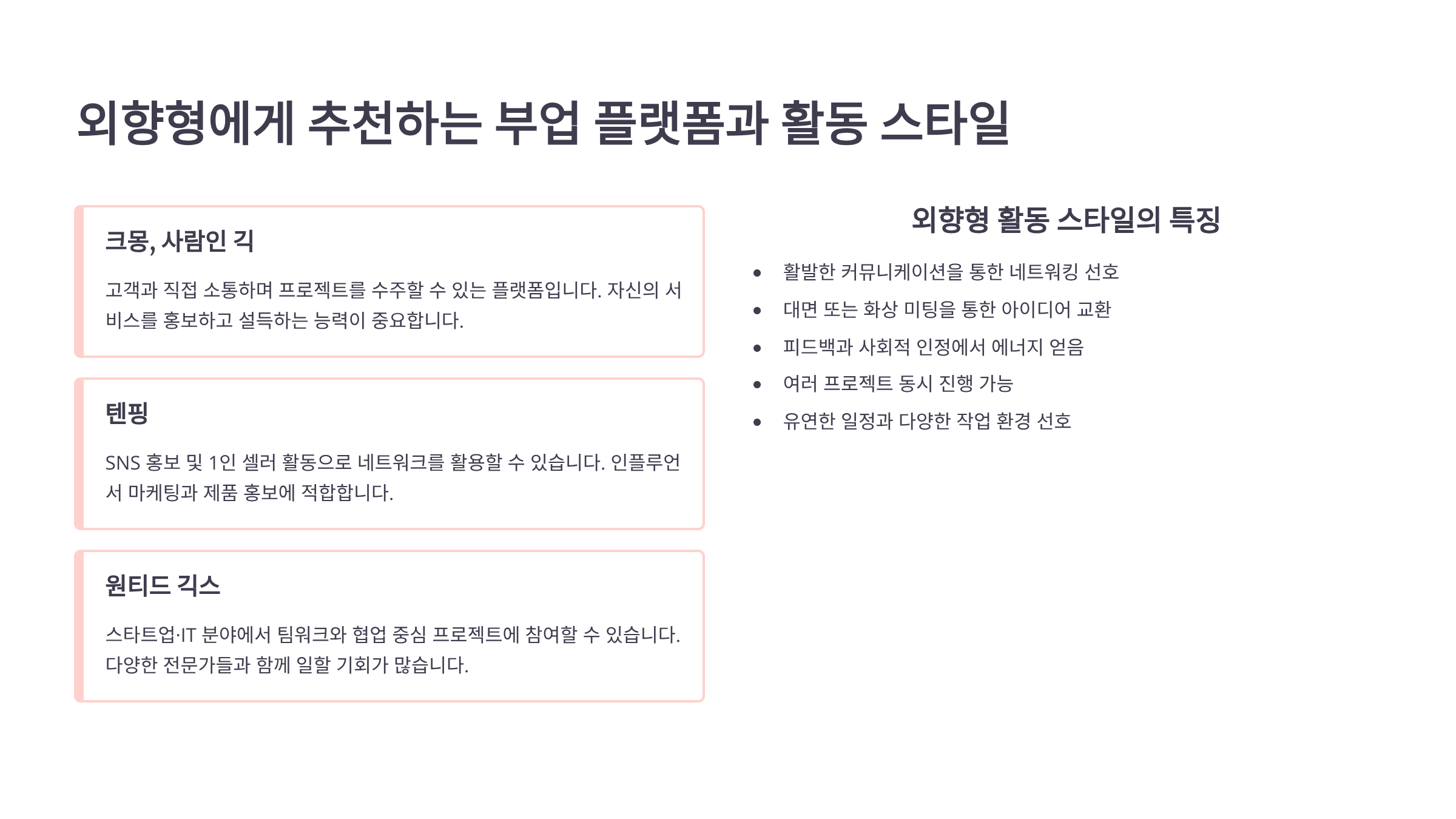 | 성향 유형 | 추천 부업 | 대표 플랫폼 |