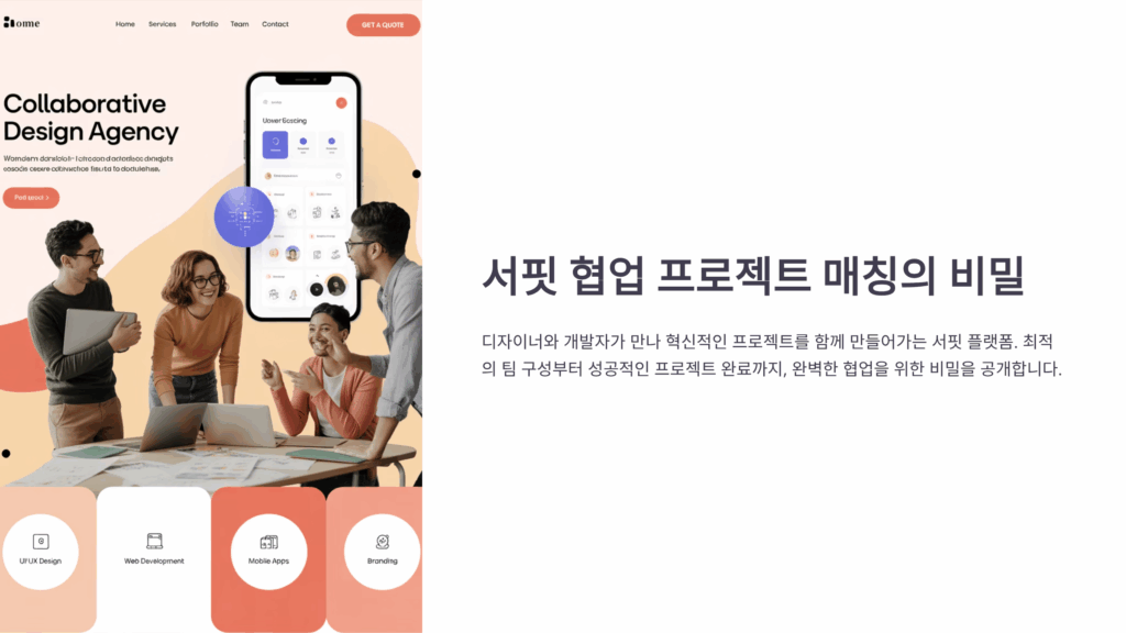 A5. 물론이에요! 팀 계정을 만들어서 공동으로 프로젝트를 수주할 수 있어요. 팀원별 역할 분담과 수익 배분을 명확히 설정할 수 있고, 팀 포트폴리오도 별도로 관리 가능해요.