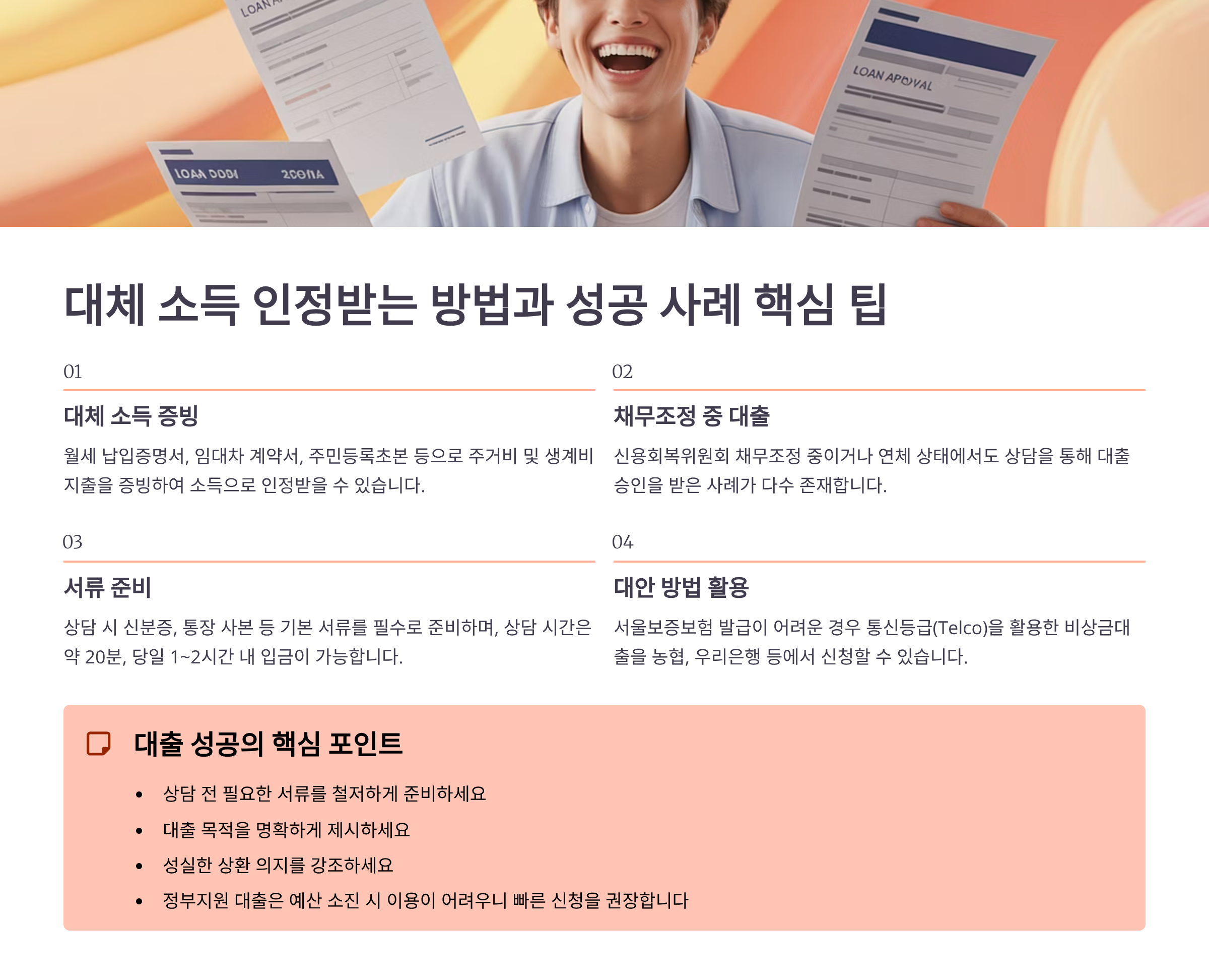 - 다양한 대체 소득 인정 (프리랜서, 용돈, 임대소득 등)