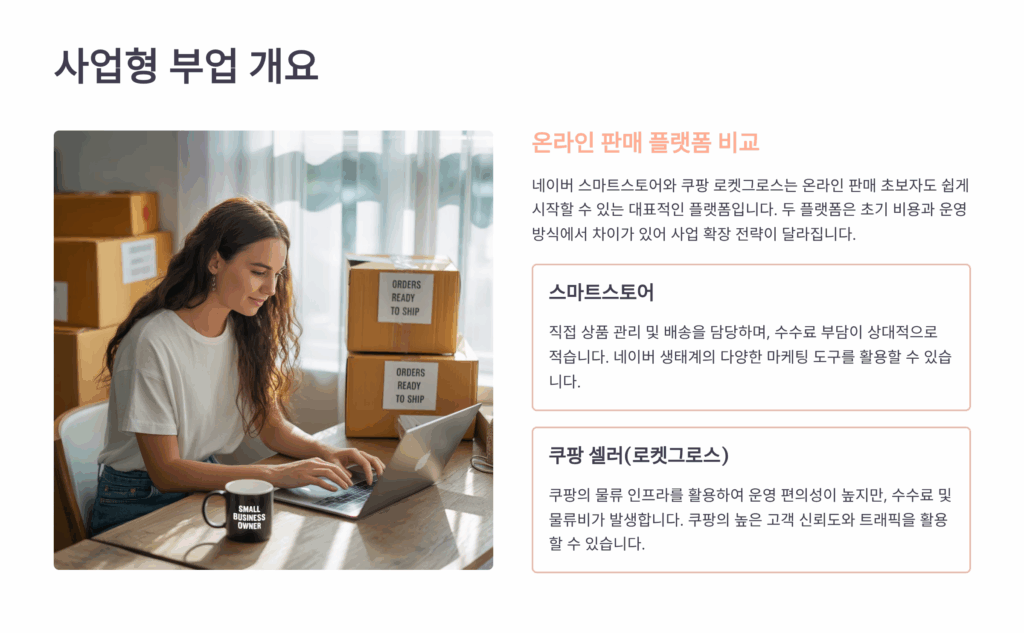 온라인 쇼핑몰 창업은 이제 사업자등록증만 있으면 누구나 시작할 수 있는 대표적인 부업이 되었어요. 특히 스마트스토어와 쿠팡은 각각의 장단점이 뚜렷해서 본인의 상황에 맞는 플랫폼을 선택하는 게 중요해요. 스마트스토어는 네이버 검색 유입이 강점이고, 쿠팡은 빠른 배송 시스템이 큰 장점이에요.
