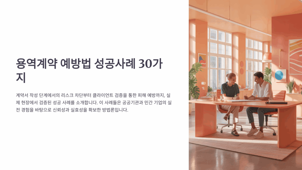 하지만 이제는 달라요. 체계적인 예방법을 익히고 나니 용역계약 관련 분쟁이 거의 사라졌어요. 제가 직접 경험하고, 주변 동료들의 사례를 모아서 정리한 30가지 성공사례를 통해 여러분도 안전한 용역계약을 체결할 수 있도록 도와드릴게요. 특히 계약서 작성부터 대금 회수까지 단계별로 실제 효과가 있었던 방법들만 엄선했어요!