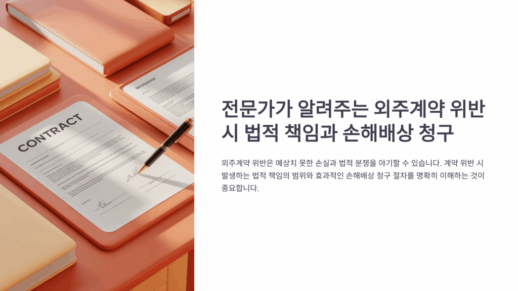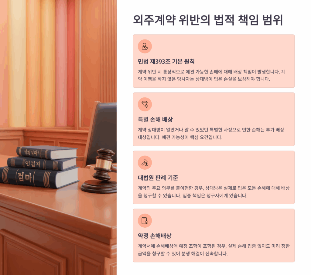 외주계약 위반은 프리랜서나 사업자 모두에게 큰 부담이 되는 법적 문제예요. 계약서에 명시된 내용을 어기면 민사상 손해배상 책임은 물론이고, 경우에 따라서는 형사 처벌까지 받을 수 있어요. 특히 2025년 현재 외주계약 분쟁이 급증하면서 법원의 판례도 더욱 엄격해지고 있답니다.