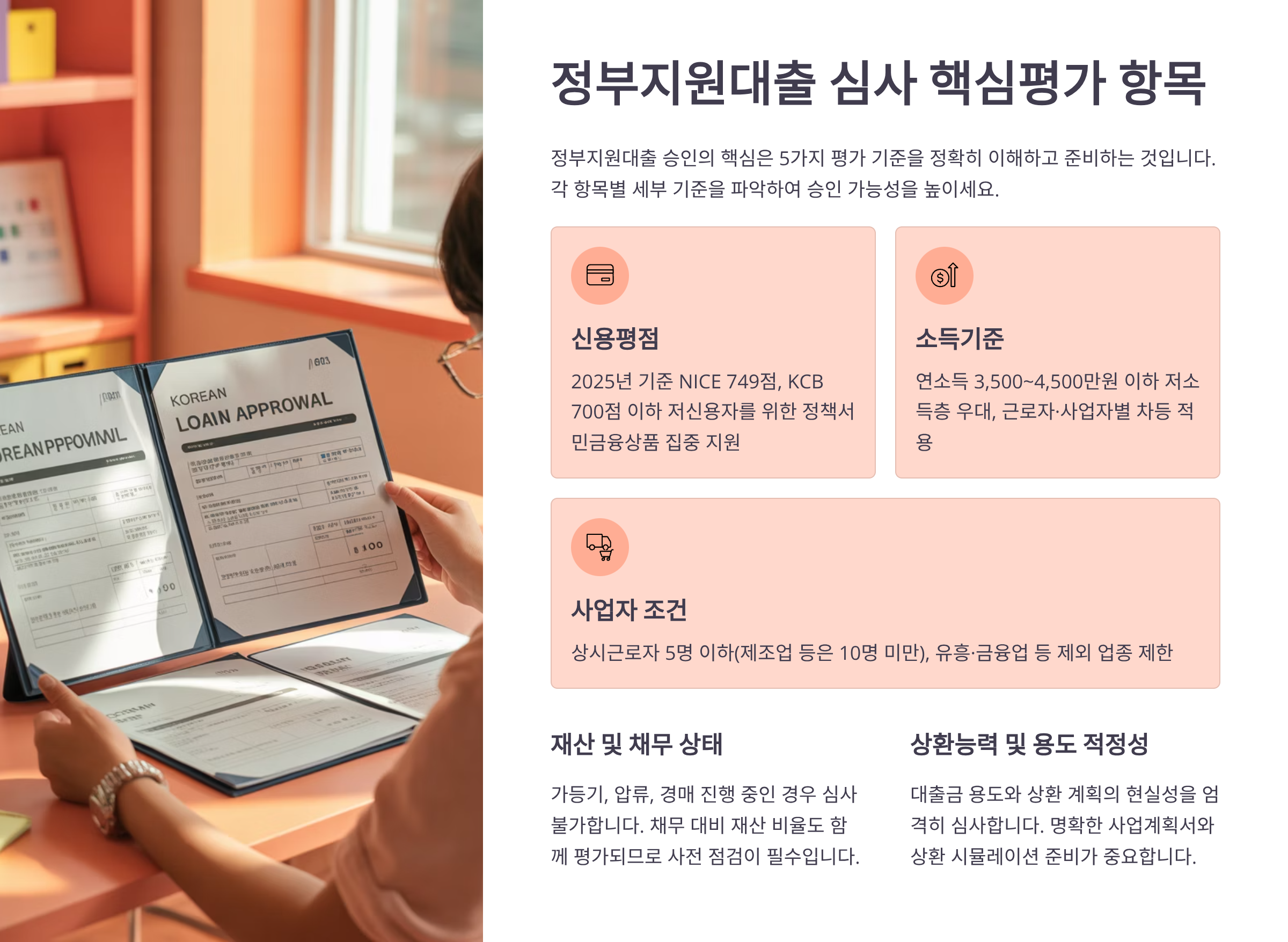 정부지원대출 심사에서 가장 중요하게 평가하는 항목들을 알아볼게요. 금융기관마다 세부 기준은 다르지만, 공통적으로 중요시하는 핵심 평가항목이 있어요.
