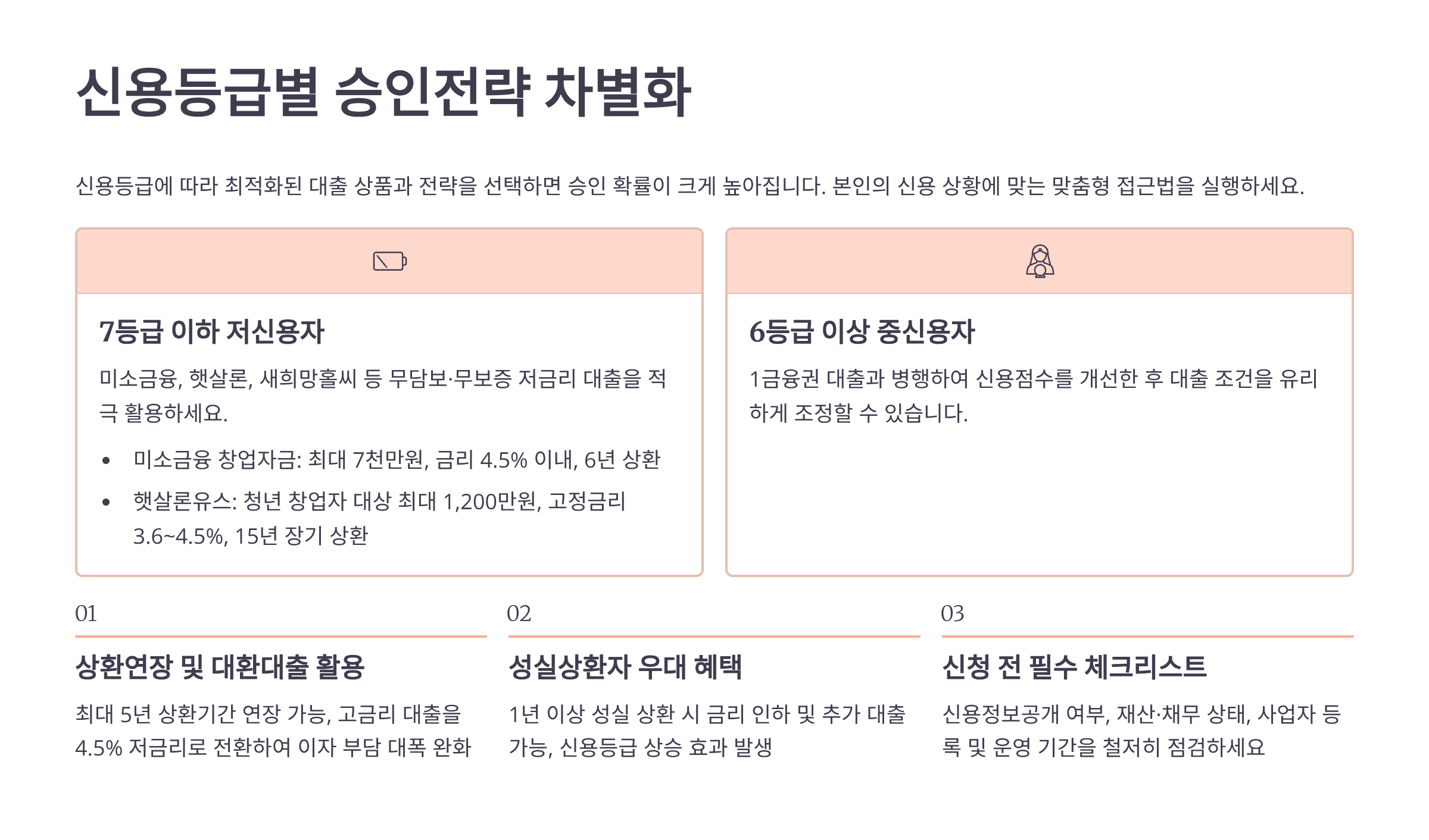 신용등급에 따라 정부지원대출 승인 전략을 다르게 가져가야 해요. 각 등급별로 어떤 준비를 해야 하는지 구체적으로 알아볼게요.