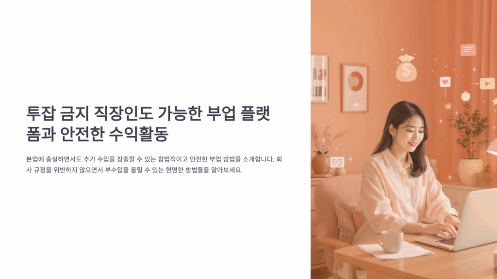 직장인들이 가장 고민하는 부분이 바로 부업이에요. 특히 투잡 금지 조항이 있는 회사에 다니시는 분들은 더욱 조심스러울 수밖에 없죠. 하지만 물가는 계속 오르고 월급만으로는 부족한 현실에서 합법적이고 안전한 부업 방법을 찾는 것이 중요해졌어요. ????
