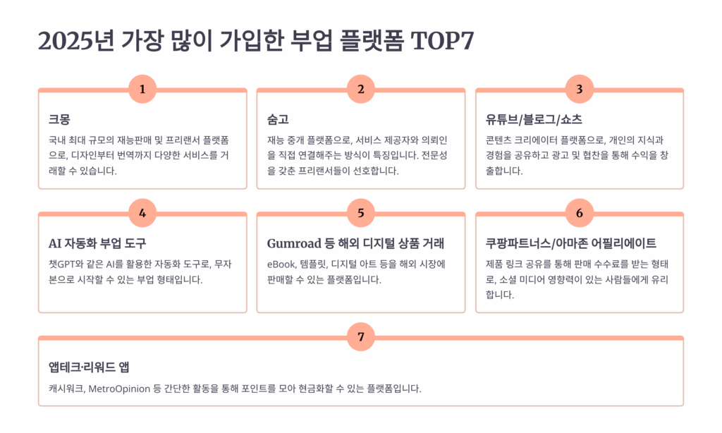 2025년 가장 많이 가입한 부업 플랫폼 TOP7