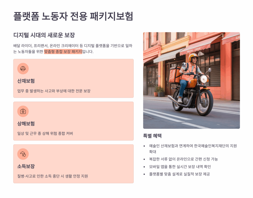 2025년 가장 주목받는 보험상품은 단연 플랫폼 노동자를 위한 패키지보험이에요. 배달, 대리운전, 퀵서비스 등 플랫폼을 통해 일하는 분들이 급증하면서, 이들을 위한 맞춤형 보험이 드디어 출시되었답니다. 기존에는 산재보험 적용을 받지 못해 사각지대에 놓여있던 플랫폼 노동자들이 이제는 체계적인 보장을 받을 수 있게 되었어요.