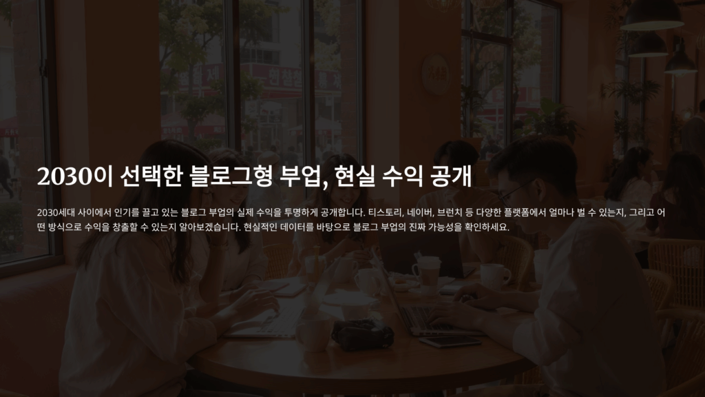 2030 세대가 블로그 부업으로 실제로 얼마나 벌고 있는지 궁금하신가요? 저도 처음에는 반신반의했지만, 실제로 시작해보니 생각보다 현실적인 수익을 올릴 수 있더라고요. 오늘은 각 플랫폼별 수익 구조부터 실제 수익 사례까지 솔직하게 공개해드릴게요.
