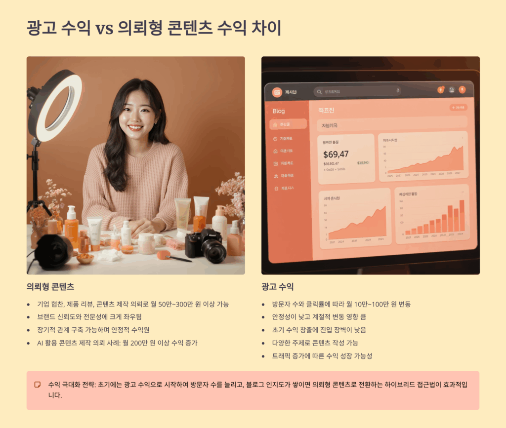 ???? 광고 수익 vs 의뢰형 콘텐츠 수익 차이